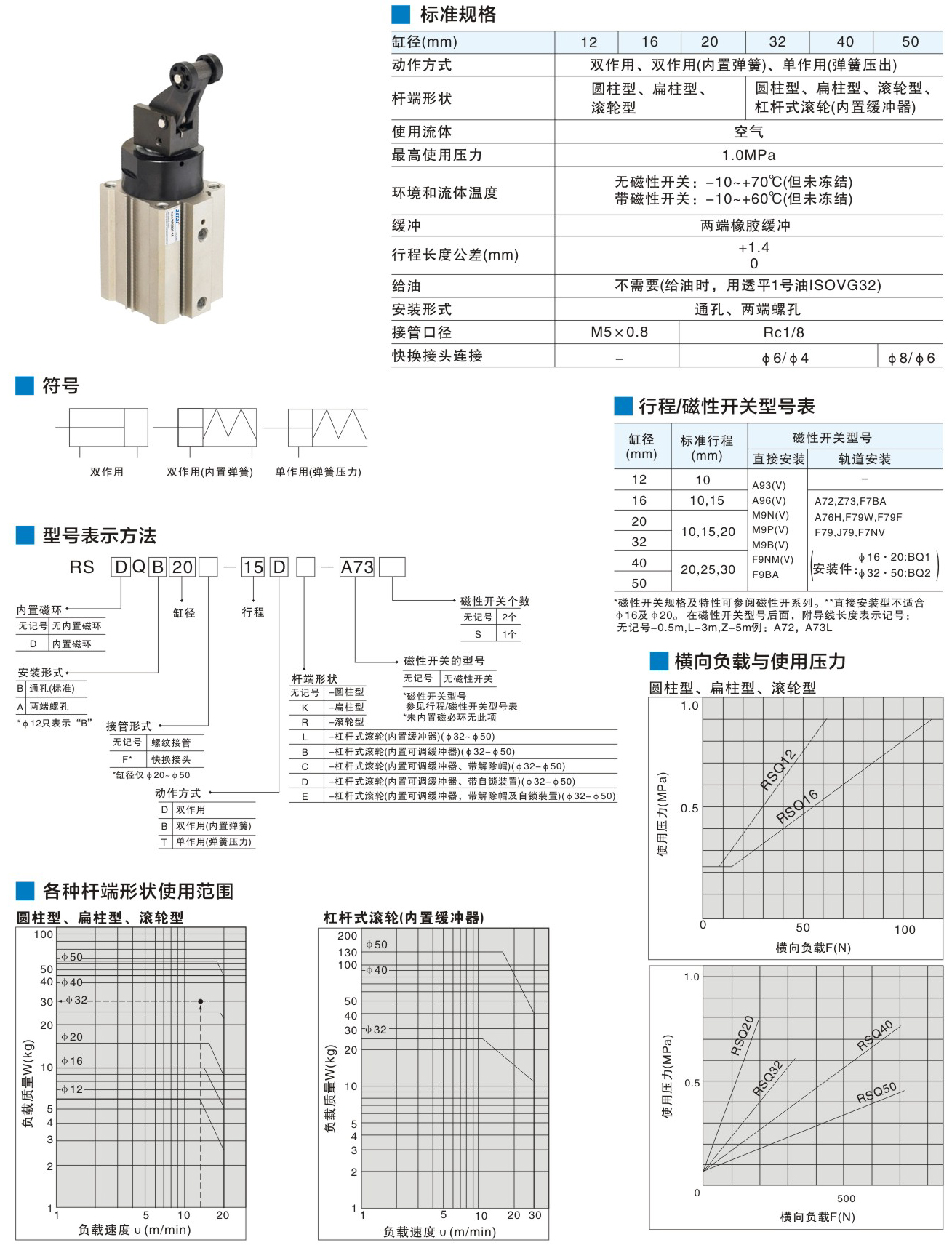 薄型氣缸 - 止動氣缸RSQ系列