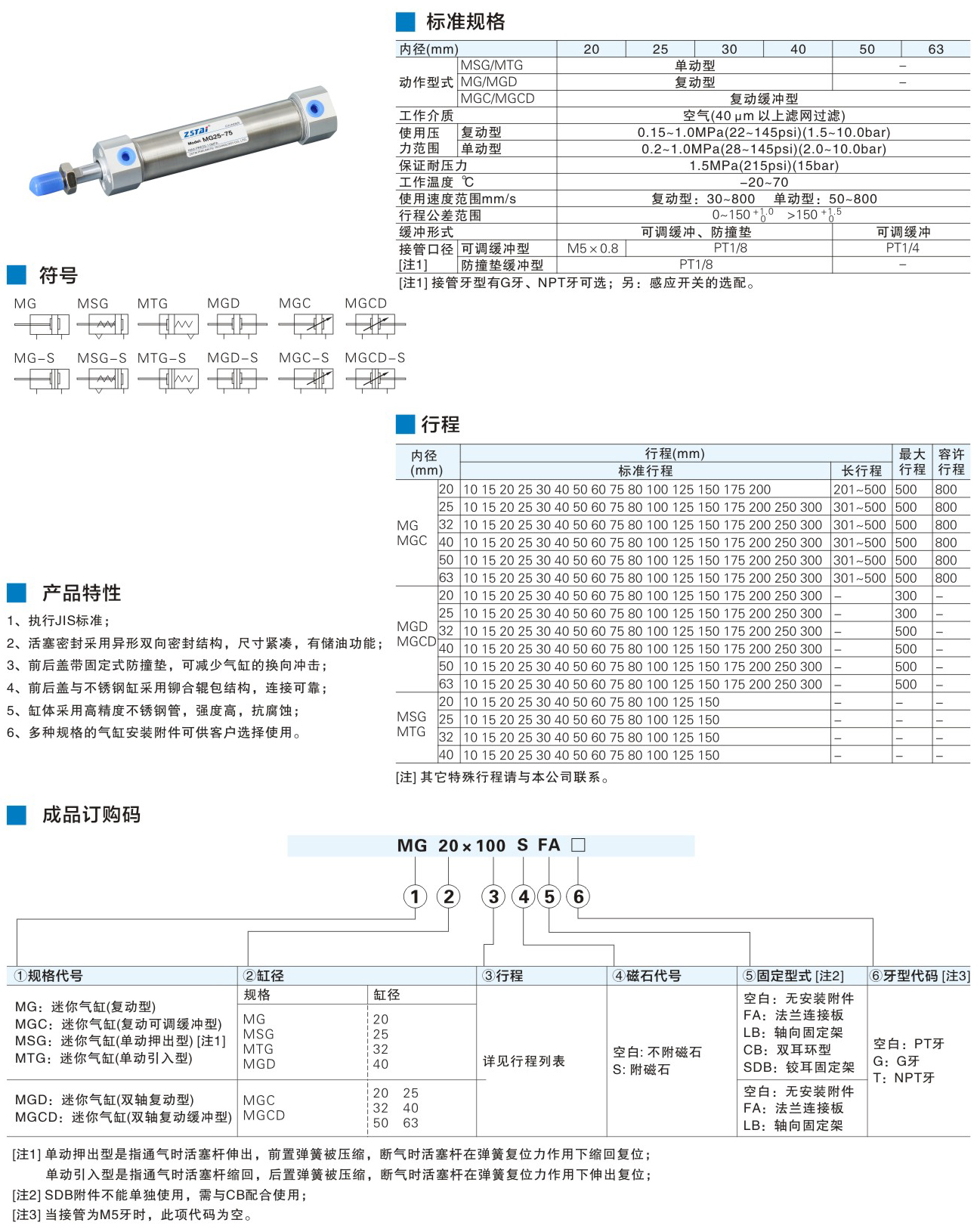 迷你氣缸 - 不銹鋼迷你氣缸MG系列