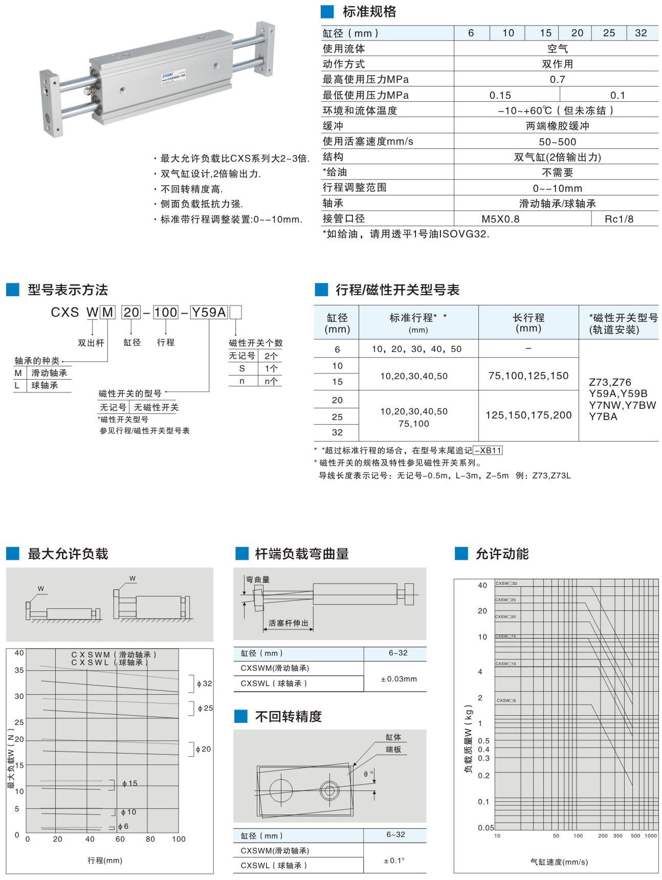 雙軸氣缸 - 雙桿/雙聯氣缸CXSW系列