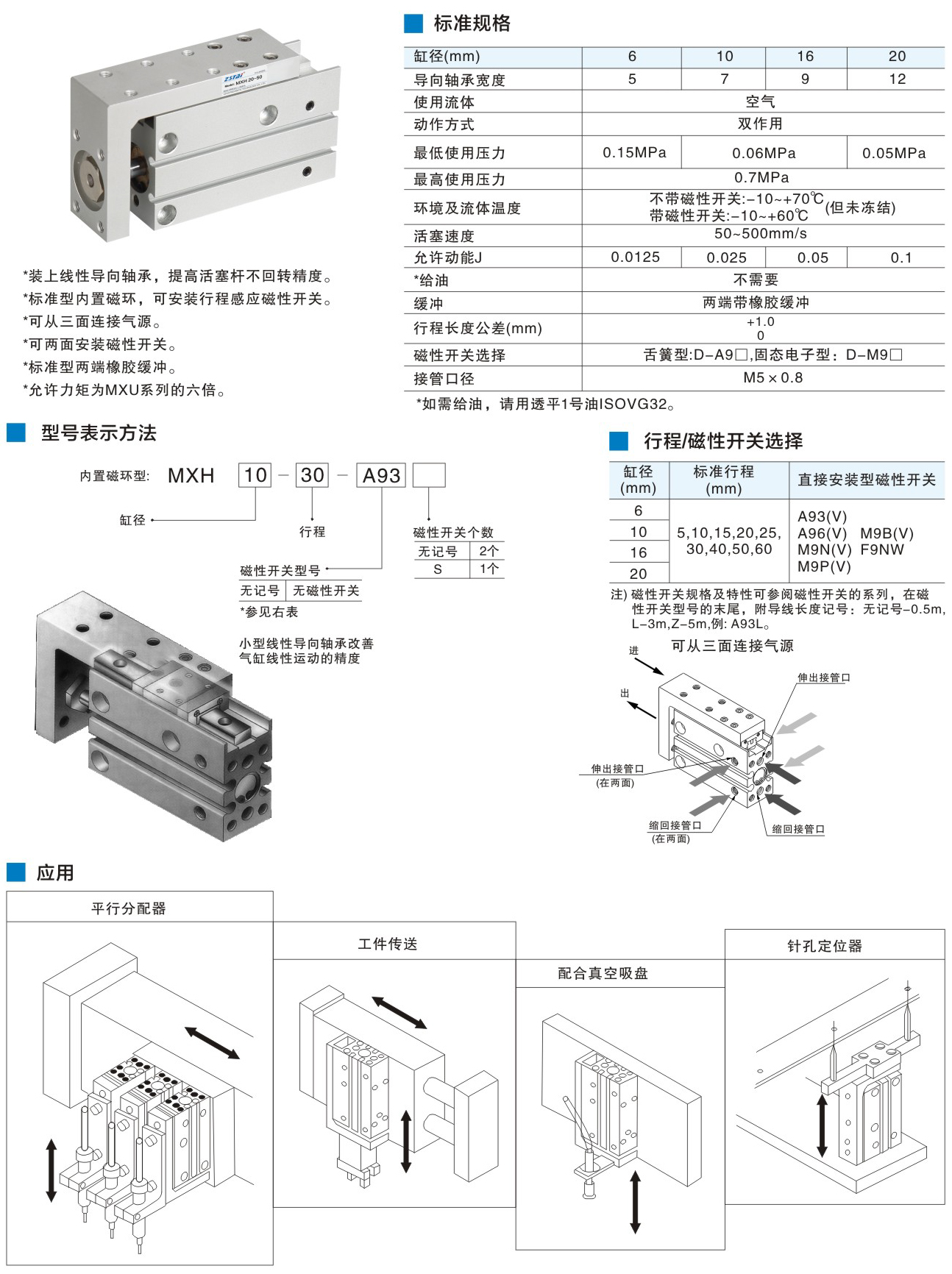 滑臺、導桿氣缸 - 小型氣動滑臺(直線導軌)MXH/HLH系列