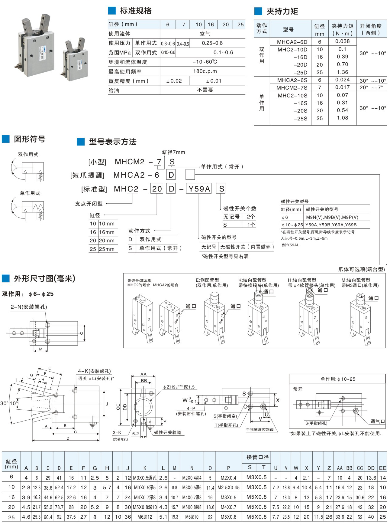 氣爪手指氣缸 - 氣爪(支點開閉型)/標準型MHC口2系列