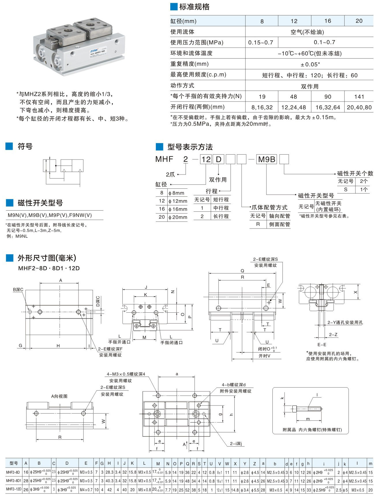 氣爪手指氣缸 - 薄型氣爪MHF2系列