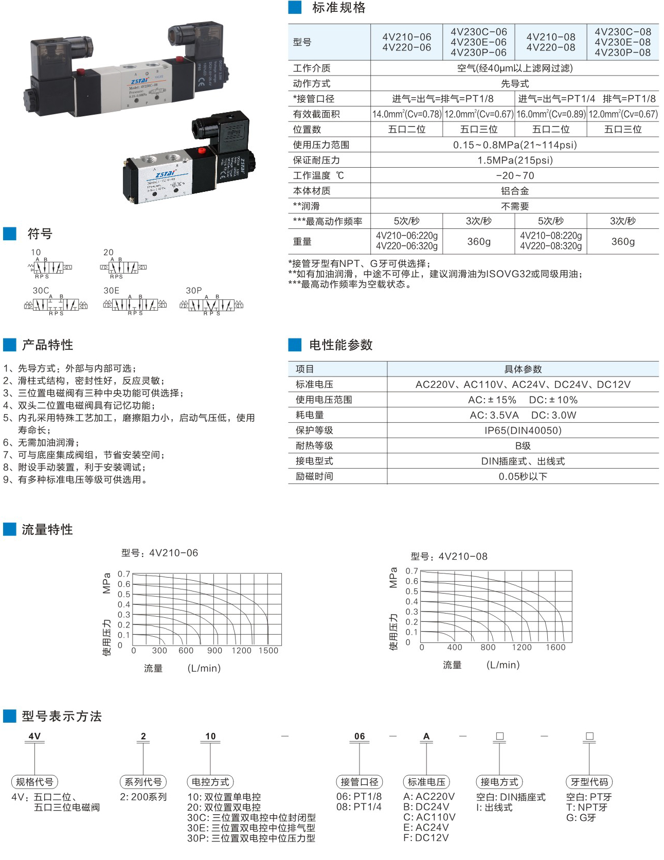 電磁閥 - 電磁閥(五口二位、五口三位)4V200系列