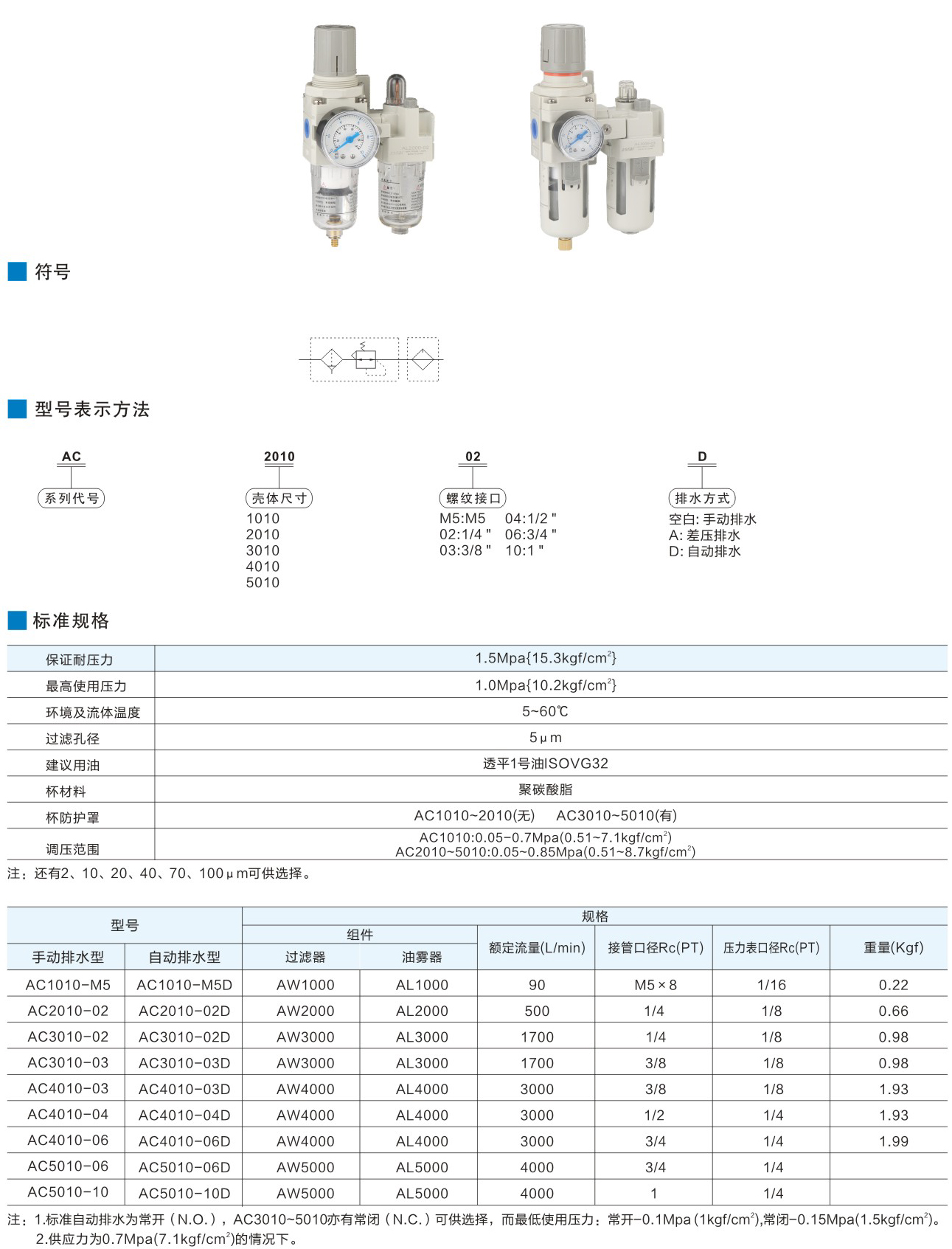 氣源處理 - 空氣過濾組合(二聯件)AC系列
